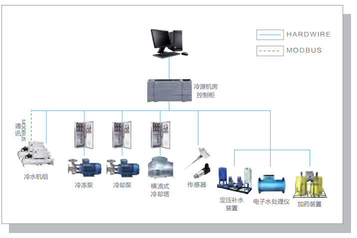 冷源節(jié)能控制系統(tǒng)是通過自動(dòng)化、智能化、集成化的方法,實(shí)現(xiàn)機(jī)房內(nèi)各設(shè)備的統(tǒng)一、協(xié)調(diào)、自動(dòng)運(yùn)行且節(jié)省系統(tǒng)能耗的綜合系統(tǒng)。