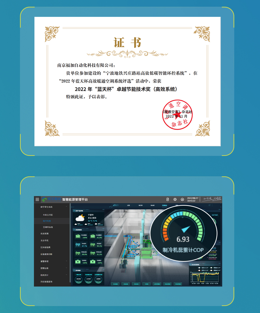 憑借寧波地鐵低碳智能環(huán)控系統(tǒng)項(xiàng)目超高指標(biāo)交付落地(機(jī)房綜合能效比達(dá)6.93),福加榮獲了卓越節(jié)能技術(shù)獎(jiǎng)(高效系統(tǒng))。