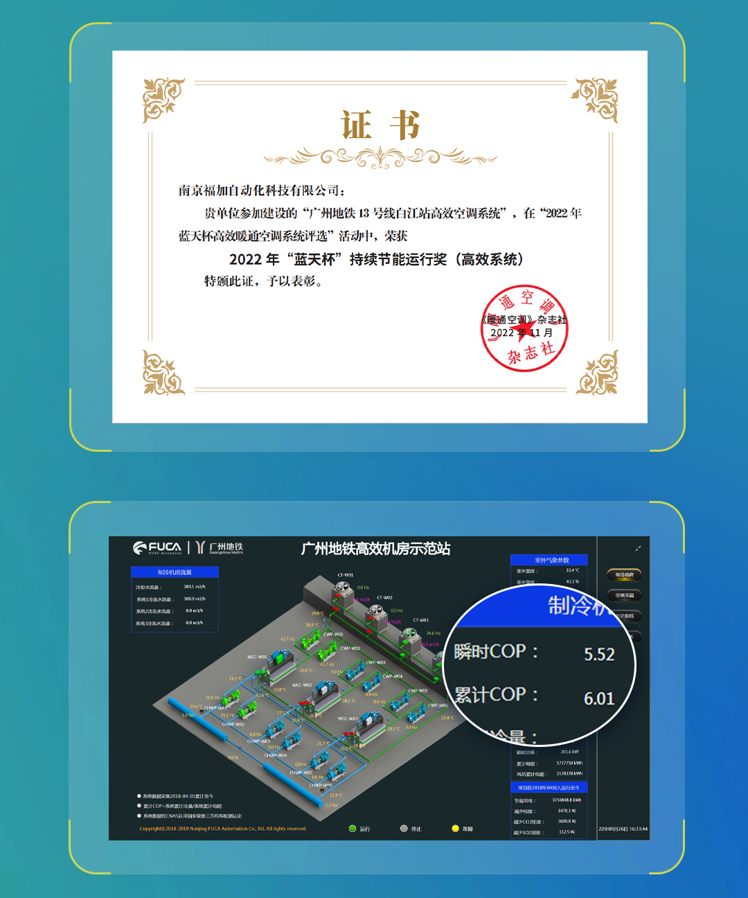 福加憑借2015年實(shí)施的廣州地鐵白江站高效機(jī)房連續(xù)4年的穩(wěn)定運(yùn)行、節(jié)能數(shù)據(jù)(自2018年至今機(jī)房綜合能效比持續(xù)穩(wěn)定超6.0)榮獲持續(xù)節(jié)能運(yùn)行獎(jiǎng)。